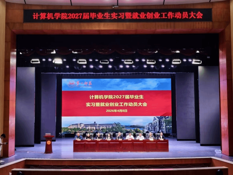 在学校田汉剧场隆重召开实习暨就业创业工作动员大会。学院党政班子成员、企业嘉宾、优秀校友代表、学工办全体教师、各系主任及毕业设计指导教师与2027届全体毕业生齐聚一堂,共同开启职业发展的新篇章。