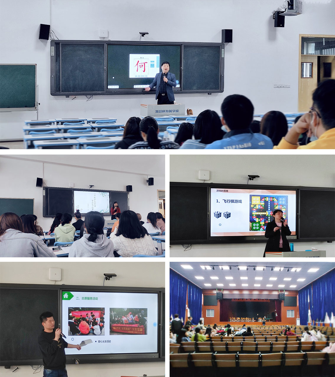 为充分体验育英学校教育技术现代化设备,见习生主要通“智慧黑板”进行远程听课,如听评中美在线英语课、语文课、数学课……,除观摩线上课程外,学校的老师们也为见习生开展了多个有趣的讲座,如莫永辉的班级管理,陈喜琴的智慧校园建设,史维的关于教师技能竞赛的经验分享课……通过多种多样的形式,了解小学课堂的组织教学、信息技术与课堂有效融合、智慧校园建设等。其中大家印象最深的是一堂数学活动课:教师通过将摸球游戏,让数学知识融入趣味性游戏中,寓教于乐,并组织学生进行讨论、交流,整个课堂气氛十分活跃,学生积极参与。