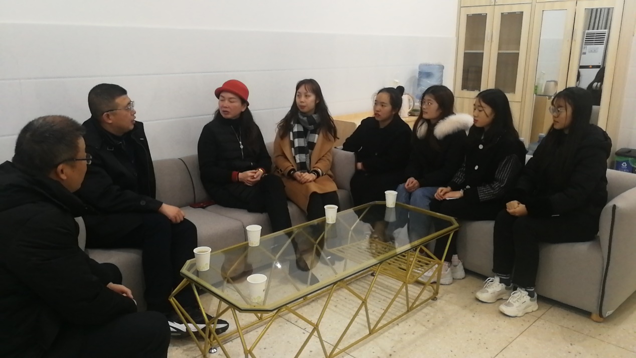 在实习点,领导们通过随机进实习生课堂、与实习生和实习单位负责人座谈,以及查阅实习学生的教案、实习作品、实习手册等材料,充分了解了同学们在实习期间的学习、工作、生活情况。另外,就后续的产学研合作与实习单位负责人深入交换了意见。