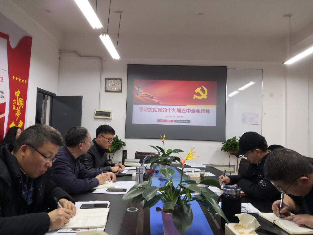 12月8日下午,在学院会议室召开的全体教职工党员大会上,学院党总支副书记成夏炎主讲了题为《学习贯彻党的十九届五中全会精神》的党课。