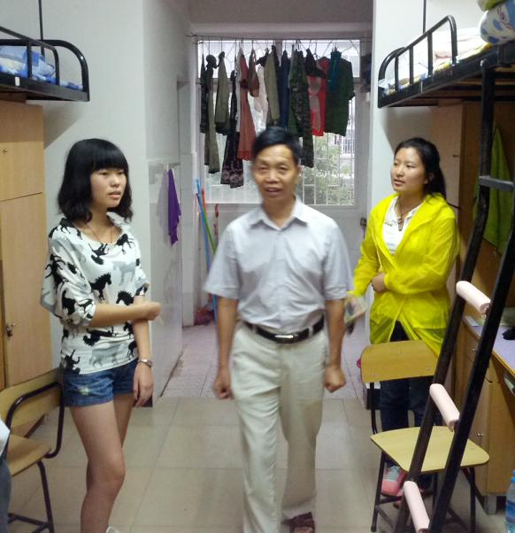 座谈会后,李院长和王书记还带领学院全体领导班子、学工处负责人到11栋、7栋、3栋学生寝室看望慰问新生,了解新生寝室的情况,并就寝室存在的问题及时与相关部门勾通,指示学院学工处认真落实解决。来自辽宁葫芦岛教育技术专业的赵高菲同学的父母饱含深情地说“我们孩子从小学到高中一直都没离开过父母,初出远门是家里六个人的牵挂,你们这么晚了还来看望孩子,并亲自解决学生寝室存在的一些小问题,我们很感动,孩子在一师学习我们完全可以放心。” |