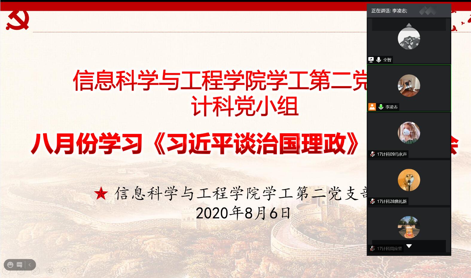 党总支书记王杰文在学院党总支理论学习中心组开展的云端集中学习时所发表的感言。