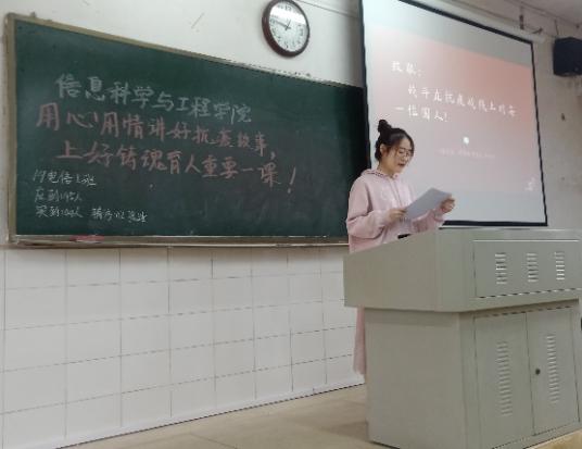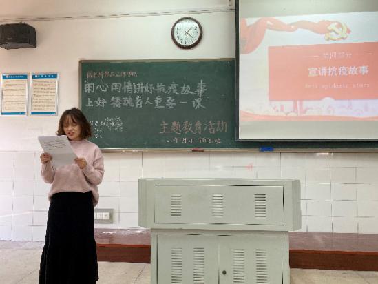 本次活动以行政班级团支部为单位,各党员、发展对象、团支部书记为报告人,通过报告会、故事会的形式讲述可歌可泣、极具启迪意义的抗疫故事。各报告人声情并茂地讲述着一位位在疫情中涌现的英雄模范人物,并号召同学们向他们学习,努力做好本职工作,昂扬积极、奋勇向前。同学们作为这场艰难抗疫斗争的亲历者、见证者,不仅在思想上、情感上产生了共鸣,也努力在行动上践行伟大的抗疫精神。