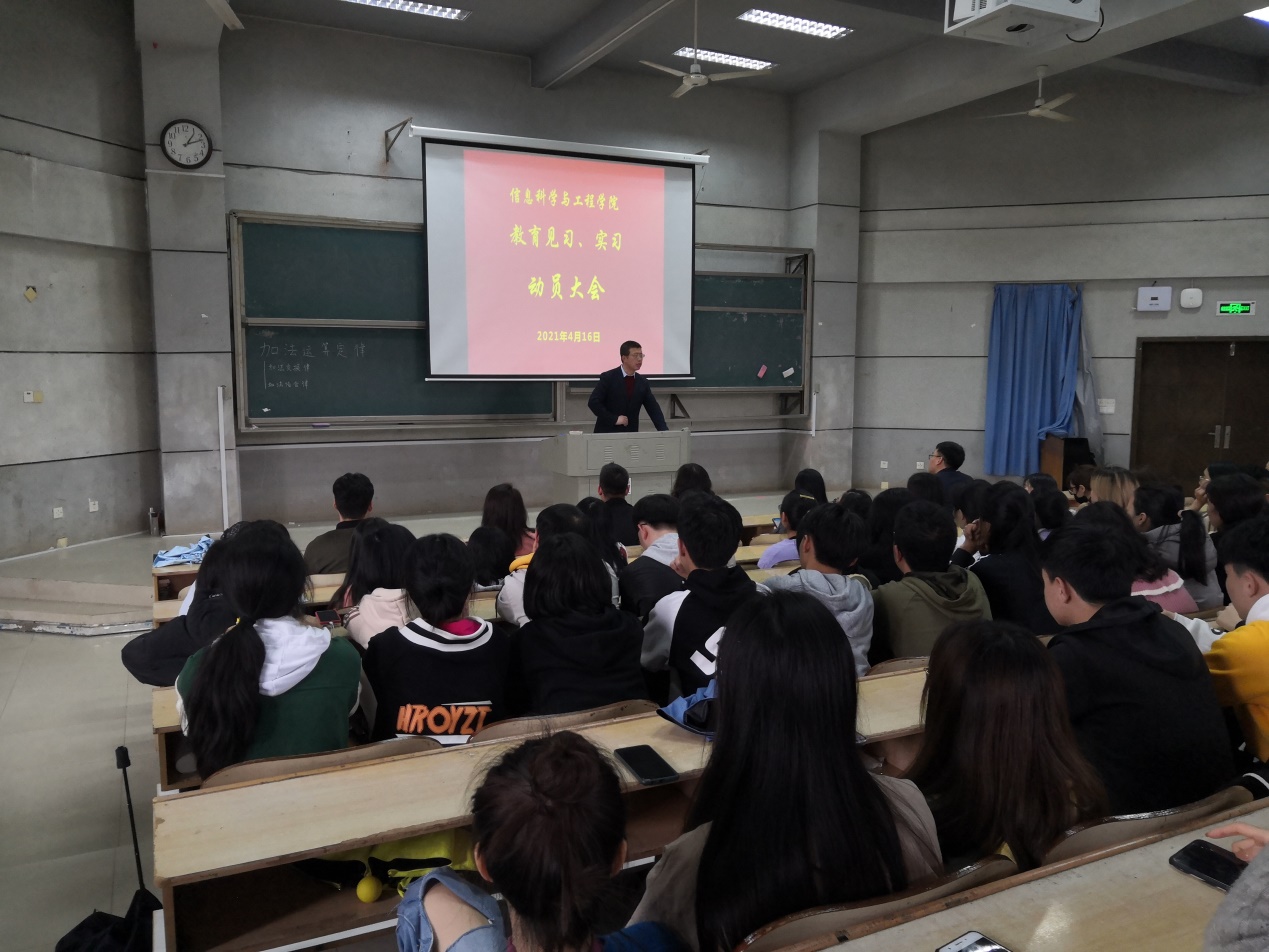 组织2018、2019级四年制教育技术学专业、2019、2020级六年制教育技术学专业学生,在润寰南105召开了2021年教育见习及教育实习动员大会。学院领导何向阳、成夏炎及带队教师张燕丽、廖瑞华、张志、刘琳出席,小学信息技术教育教研室主任黄悦主持大会。