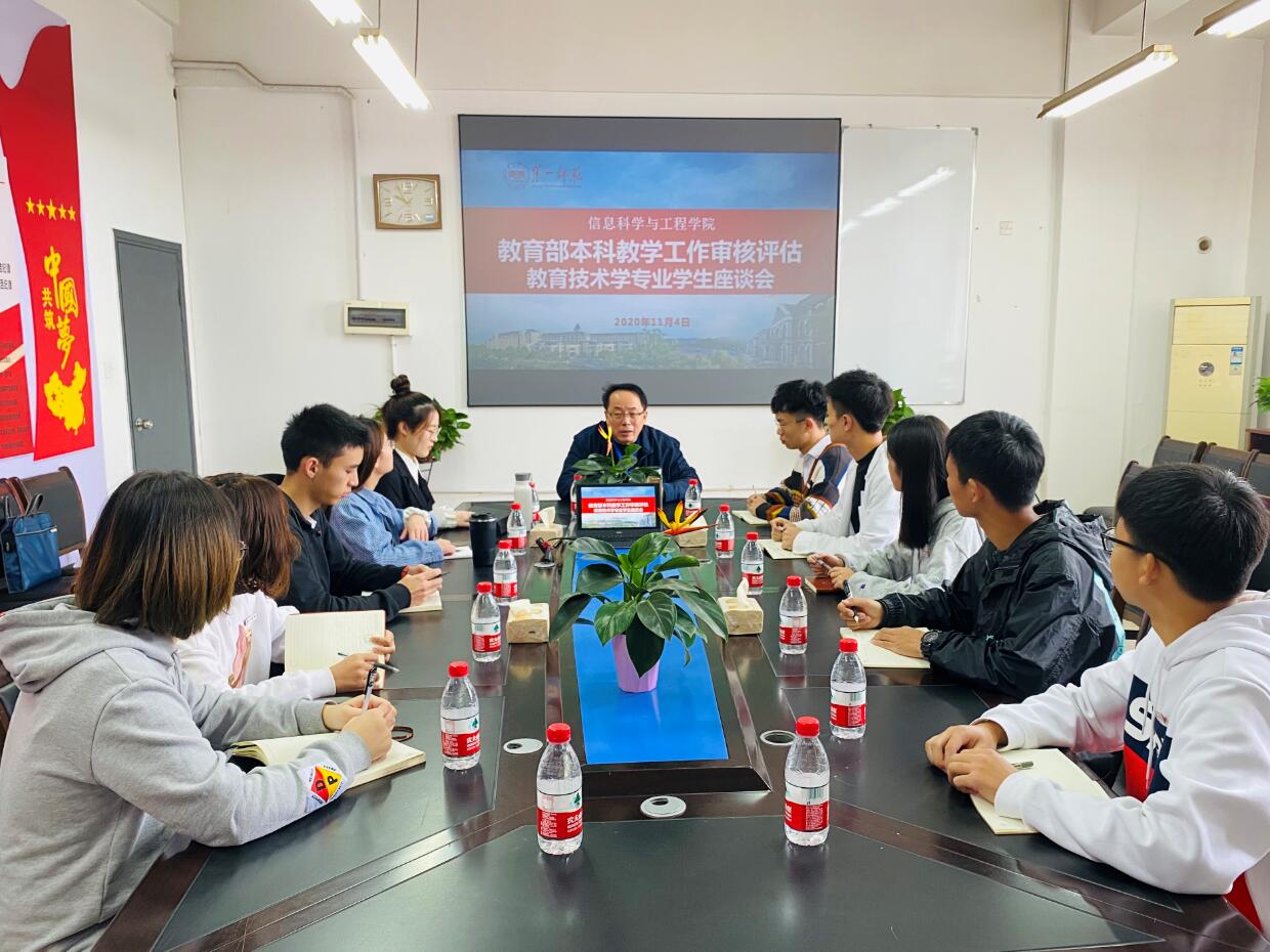 进行考察,分别与教育技术学专业学生代表、学院领导进行了座谈。
