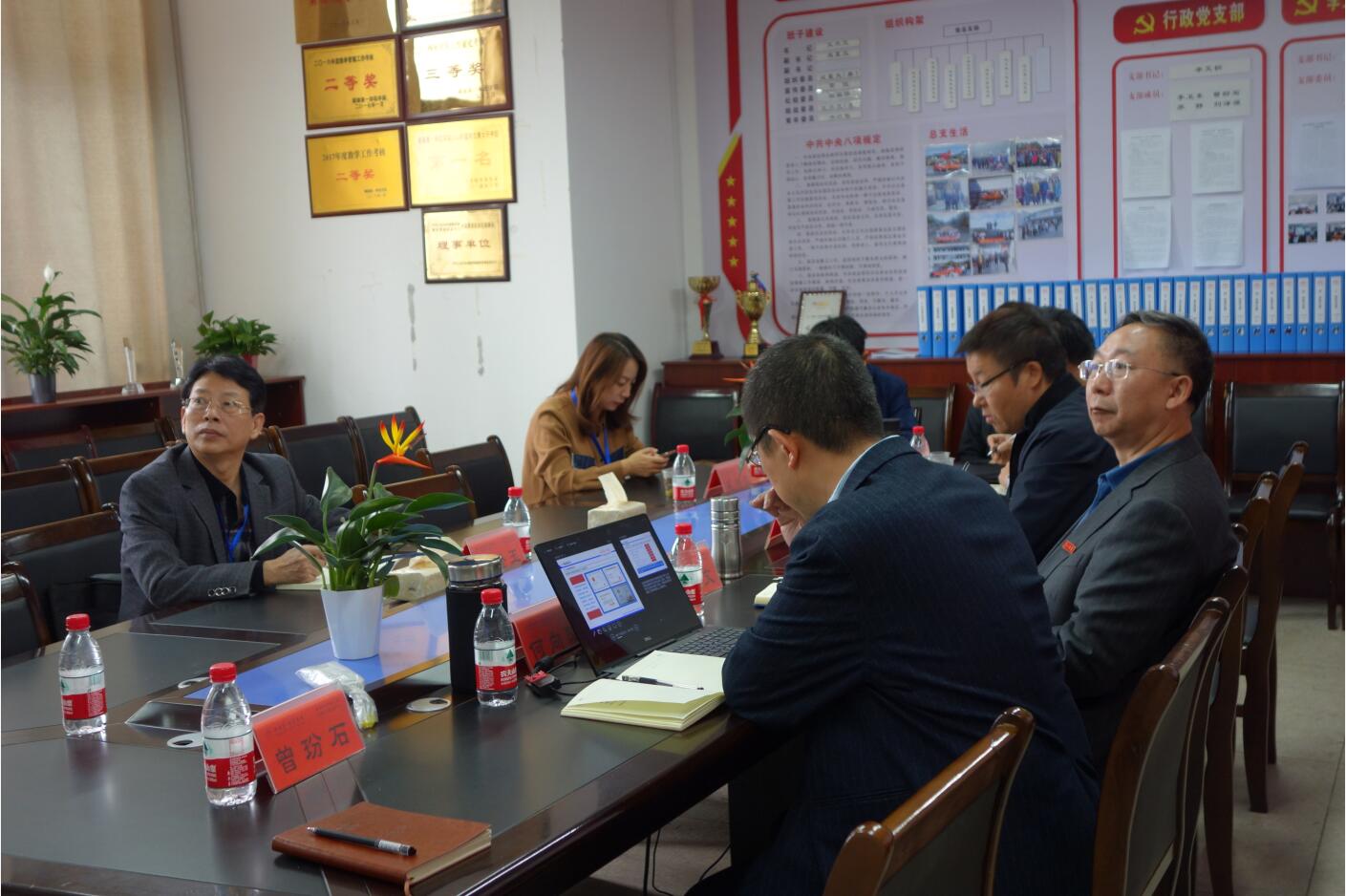 ,与学院领导班子进行座谈,学院党政办、教科办、学工办负责人参加。