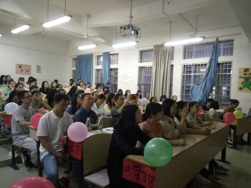 党总支书记王杰文教授、校教学督导团主任阳西述教授、教育技术学教研室张玲、姜华、张燕丽老师,以及湖南省首届师范生技能竞赛(小学组)一等奖获得者林锦超同学和12教技607班周宣晨同学担任评委。学工办李豪杰、关红儒老师等10余位嘉宾及100多名观众全程观摩。