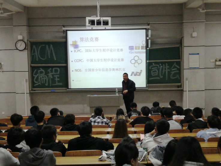 于2020年11月17日晚上7点在怀中南207召开ACM程序设计大赛动员大会。学院副院长田祖伟应邀出席,各院学生代表共计86人参加此次大会。