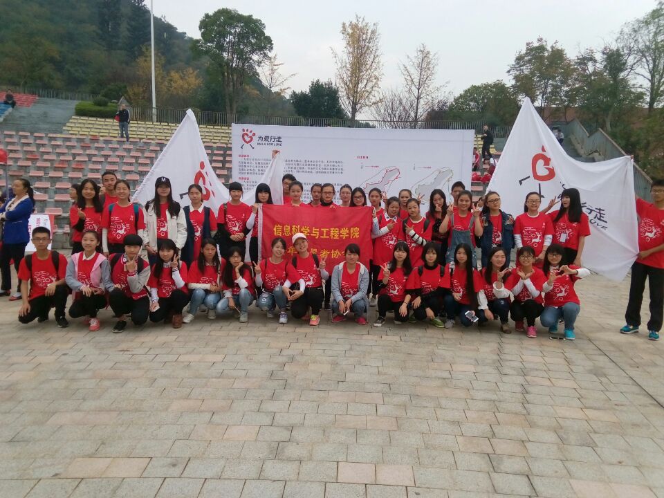 此次活动志愿者们主要工作是定点沿路指引、游戏打卡、食品补给、奖牌发放等。心中有爱的志愿者们在整个活动开展中都不怕辛苦,热情高涨,物资组的几位女生依靠团队的力量将上千人的物资全部搬运到位,充分展示了“信工巾帼”的风采。志愿者组的小伙伴们更是提前走完了全程,认真地记下了沿途的每一个细节。沿路指引的志愿者张思思表示:“虽然很累,但我很高兴能见证一个个团队迎接最后的胜利,与他们一起分享喜悦。和大家在一起参加这样的公益活动,我感到很幸福。”