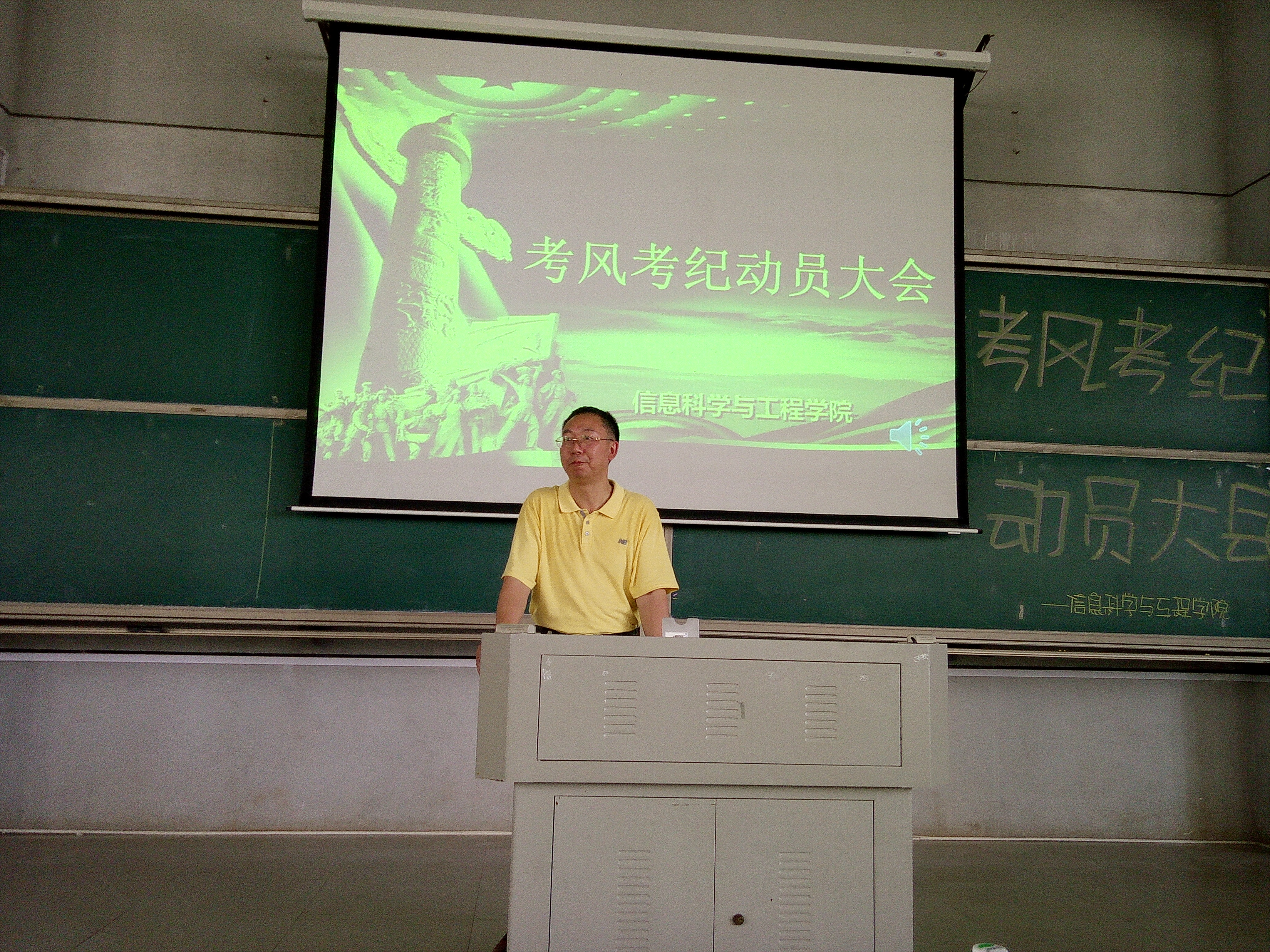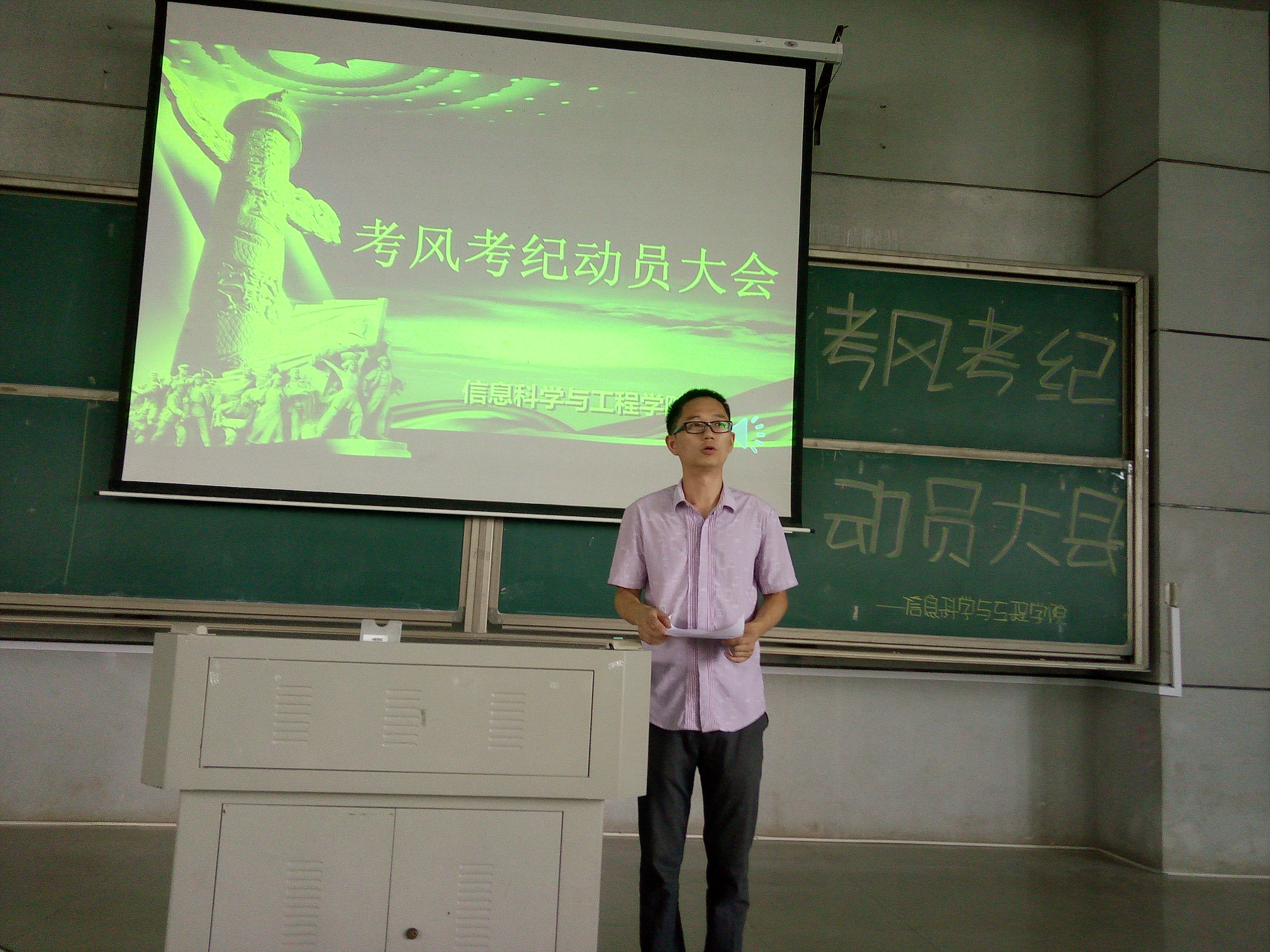 (通讯员李豪杰 龙紫荆) 为严肃考风考纪,端正学习态度,严明考试纪律,促进学风建设, 6月23日中午12点30分,信息科学与工程学院在理A104教室召开考风考纪动员大会。院党总支书记王杰文、副院长王建军、学工办关红儒老师以及全体学生干部参加了此次会议。会议由关红儒老师主持。