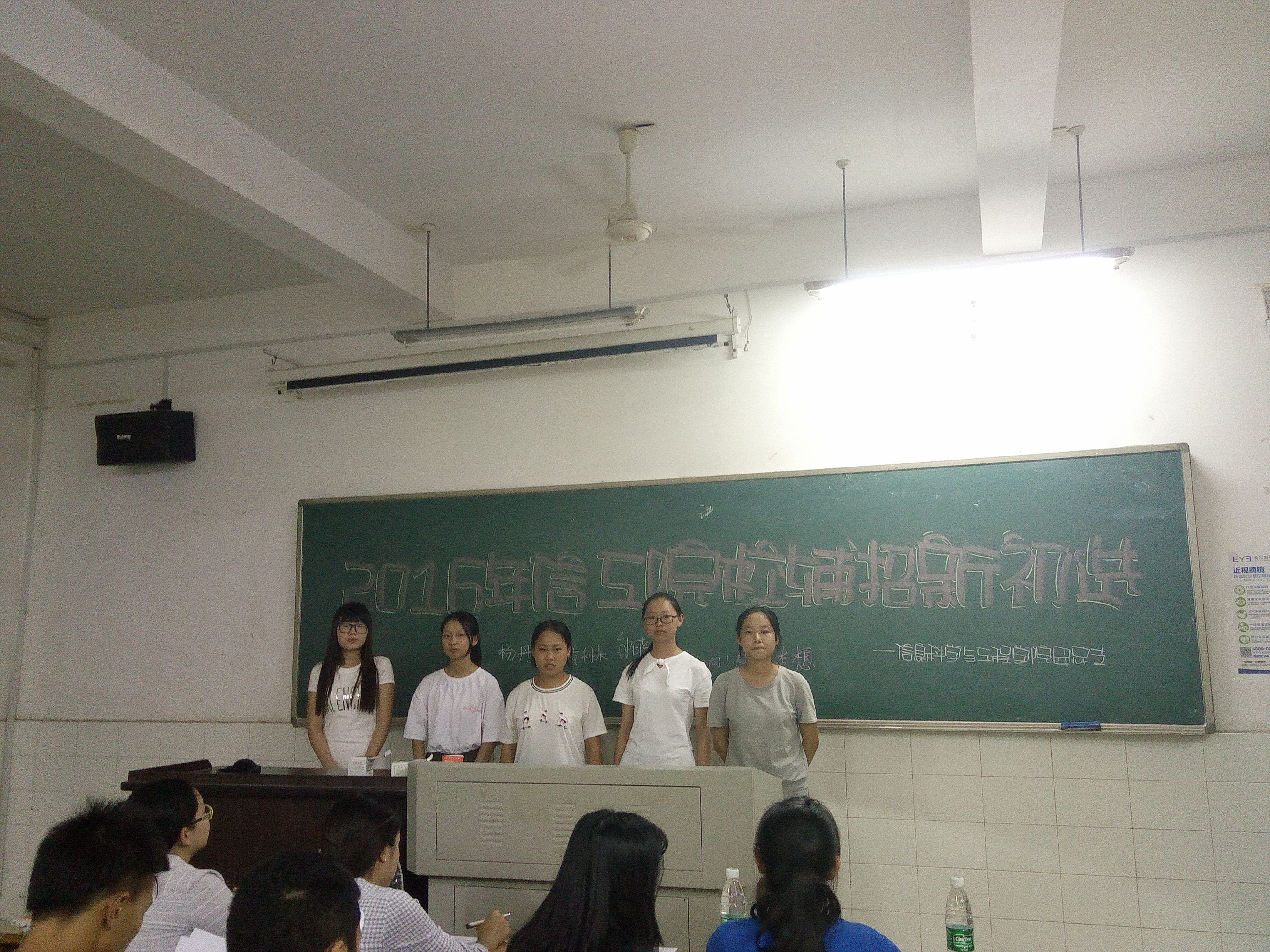 (通讯员 龙紫荆) 9月22日晚7点整,信息科学与工程学院2016年校辅招新初选在理科楼C栋301教室顺利举行。学院团总支副书记刘静茹、前实践部部长易青山、办公室主任赵越、副主任李菲菲、学生会副主席李依婷、青志协主席邓雨佳、副主席黄兰娇等学生干部担任本次初选评委。