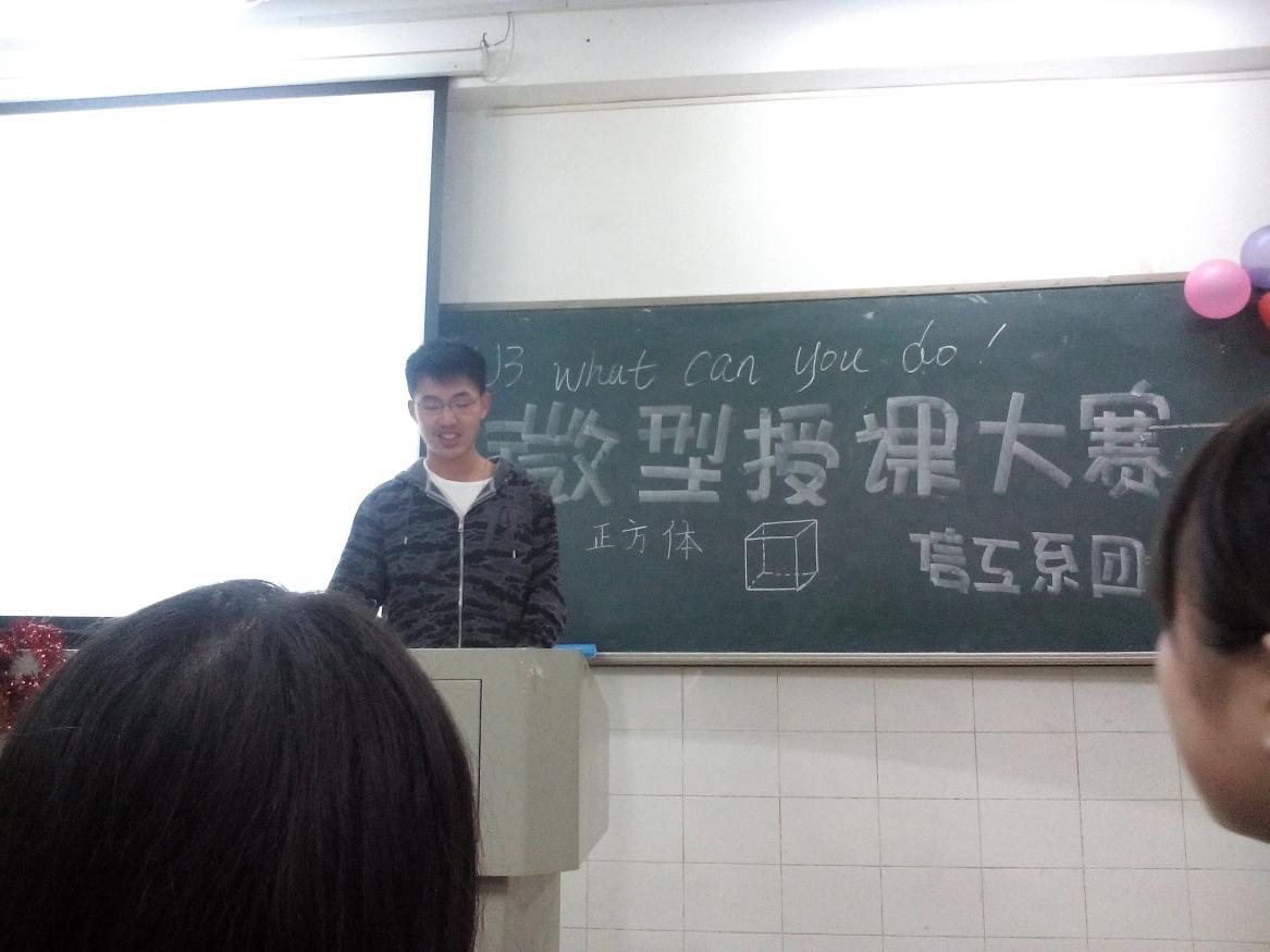 (通讯员 丁青 易利) 为提高同学们的教学能力,调动起大家对教育教学的兴趣。2014年5月5号晚上6点30分,信息科学与工程系微型赛课在理C504教室成功举行。担任此次赛课的评委有思政理论教学部少工委主任夏海亚、外语系实践部副部长兼大学生就创业服务中心主任王佩婷以及我系团总支实践部部长蒋尚华。此次赛课由实践部助干王琼主持。