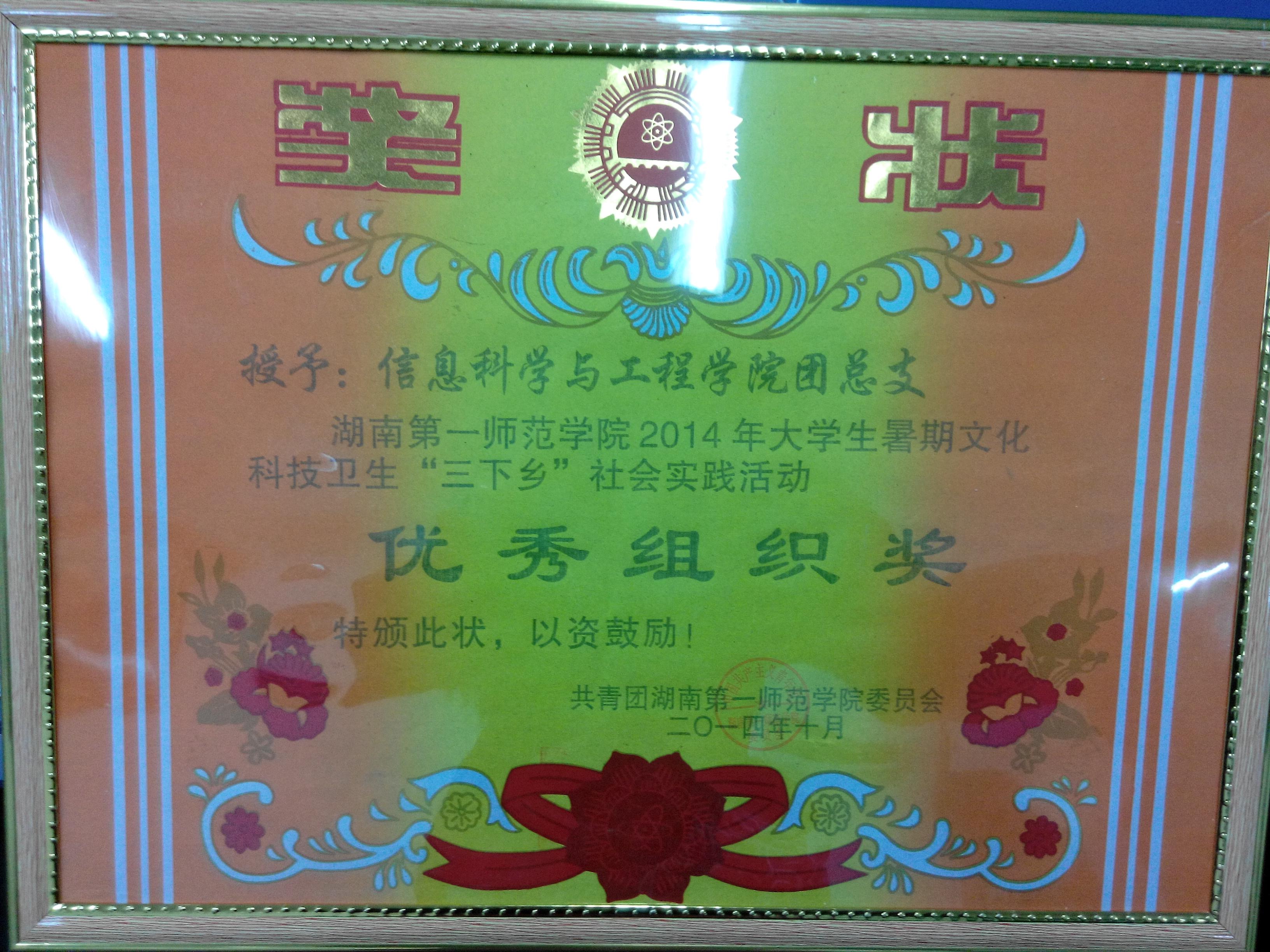 团总支“大学生暑期‘三下乡’社会实践活动优秀组织奖”,午夜av