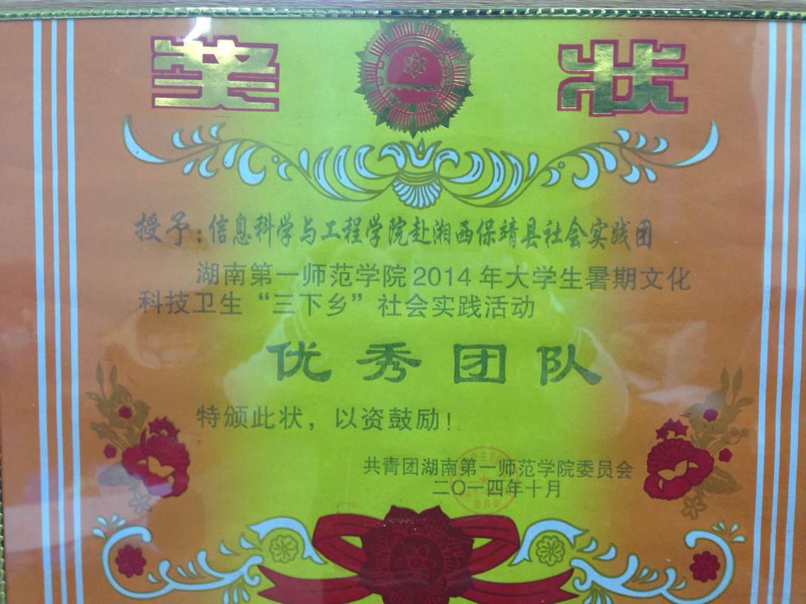 赴湘西保靖县社会实践团“大学生暑假‘三下乡’社会实践优秀团队”称号。另午夜av