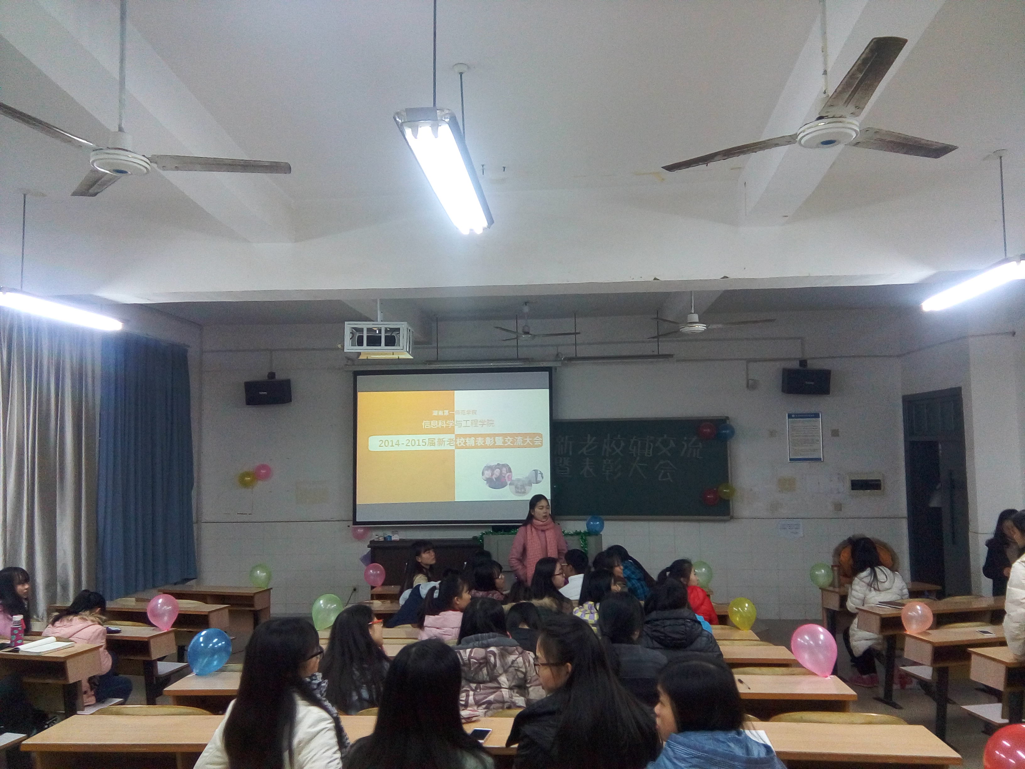 (通讯员 肖亚丽 易利)为使新任校外辅导员能够加强了解以及尽快适应自己的校辅工作,2015年11月26日晚上7点,信息科学与工程学院新老校辅交流暨表彰大会在理科楼C栋402教室成功举行。院团总支副书记黄威、院学生会主席傅婕、副主席杨瑶、院前任实践部部长张一丹、院前任实践部副部长兼少工委主任王琼应邀出席了本次交流大会。大会由14级电子科学与技术1班龙真真主持。