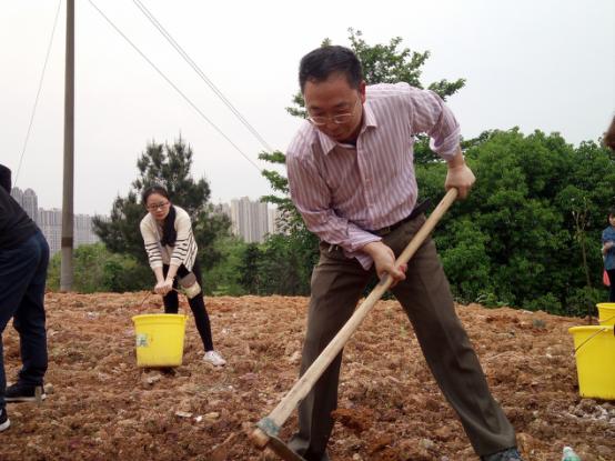 植树现场,学院党总支书记王杰文与老师同学们拿起铁锹、锄头热情地参与到植树活动中。同学们被领导老师的热情所感染,有的挥锹铲土,有的扶树填土,有的培土浇水,忙得不亦乐乎。王杰文书记一边用力地挥动着锄头一边向同学们传授着植树要领:“挖土下去那一下要使劲!土里面的石头要拣出来!”。经过将近一个小时的劳动,100多棵树在山坡上“安家落户”,为一师校园添上了一抹“信工绿”。虽然在植树过程中下起了雨,泥巴裹满了老师、同学们的裤腿,但是午夜av