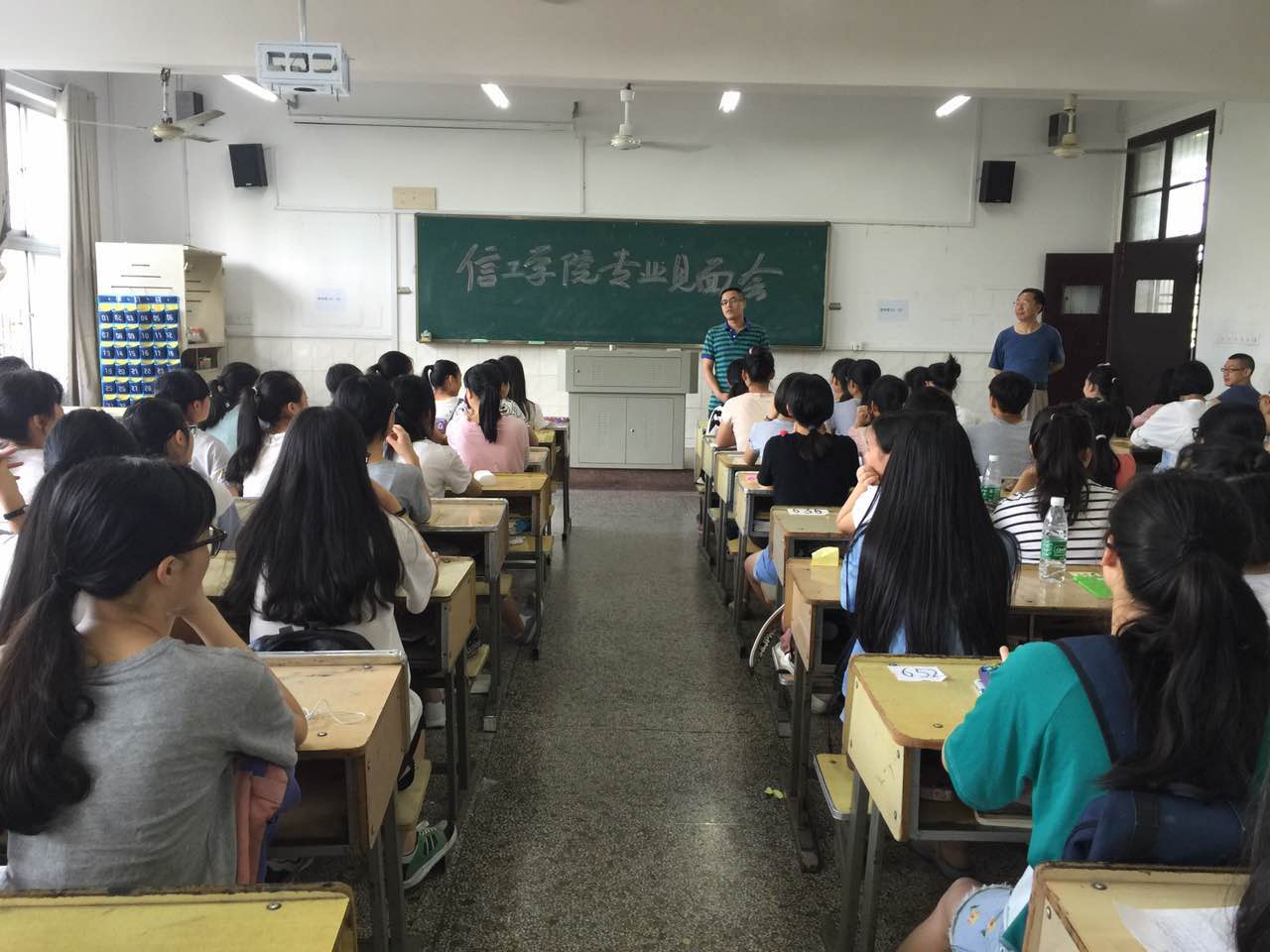 师生见面会开始后,王书记对信息科学与工程学院的发展历史、在职教师、课程设置、实验教学设备等方面进行了介绍,并对727、728班新生提出了具体要求和个人发展期望。罗书记就新生学习目标、学习纪律、学生活动、日常管理制度等方面做了详细介绍。李豪杰老师从学习、生活、纪律等给新生提出了明确的要求并对宿舍搬迁方案做了详细的解读。