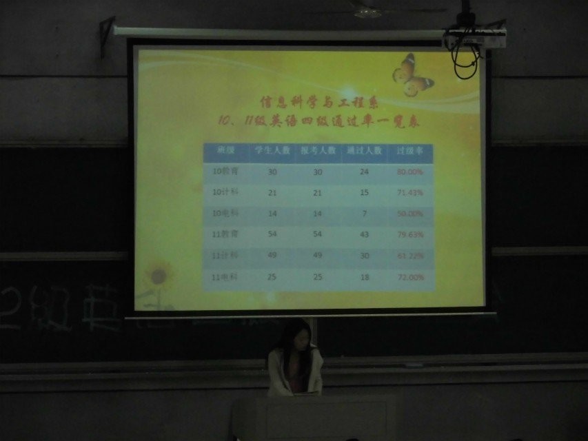 紧接着优秀学生代表11电子科学与技术1班王婷向大家展示了10级、11级较高的四级通过率,并分享了四级考试的宝贵经验。12教育技术学1班宋丽代表全体2012级学生表达了努力备考四级考试的决心。