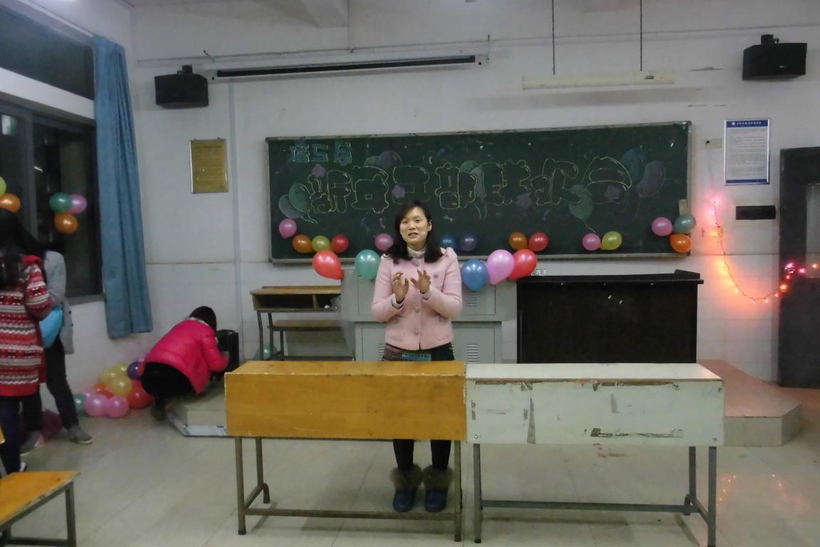 首先,易利老师为此次联欢会致辞,为同学们送上了真挚的新年祝福,同时还强调以朋友的身份和大家一起欢度此次新年联欢会。