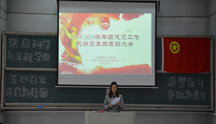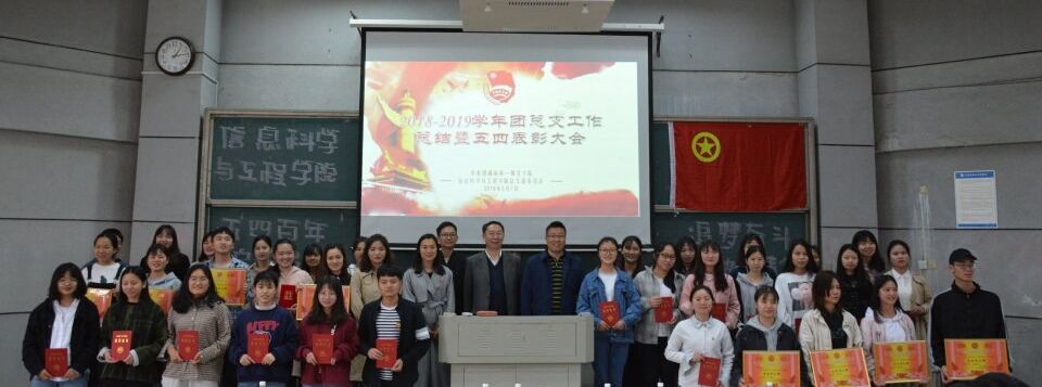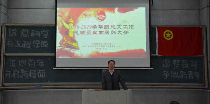 (通讯员 邓力超 雷楠)为引导和激励青年团员们传承并弘扬“五四”精神,牢记历史使命,坚定“四个自信”,发奋学习,勇于创新、乐于奉献,同时对表现突出的先进集体和优秀个人进行表彰,切实推动共青团思想引领、服务育人等各项工作蓬勃发展,信息科学与工程学院于5月7日中午12点30分在润寰南106隆重举行2018-2019学年工作总结暨五四表彰大会。院党总支书记王杰文教授、副院长田祖伟教授、党总支副书记易利老师,学工办主任关红儒老师,团总支书记唐瑞鸿老师,辅导员叶晶老师应邀出席,学院2018-2019届全体学生干部、各班级学生代表共计200余人参加大会。大会由团总支副书记丁姣主持。