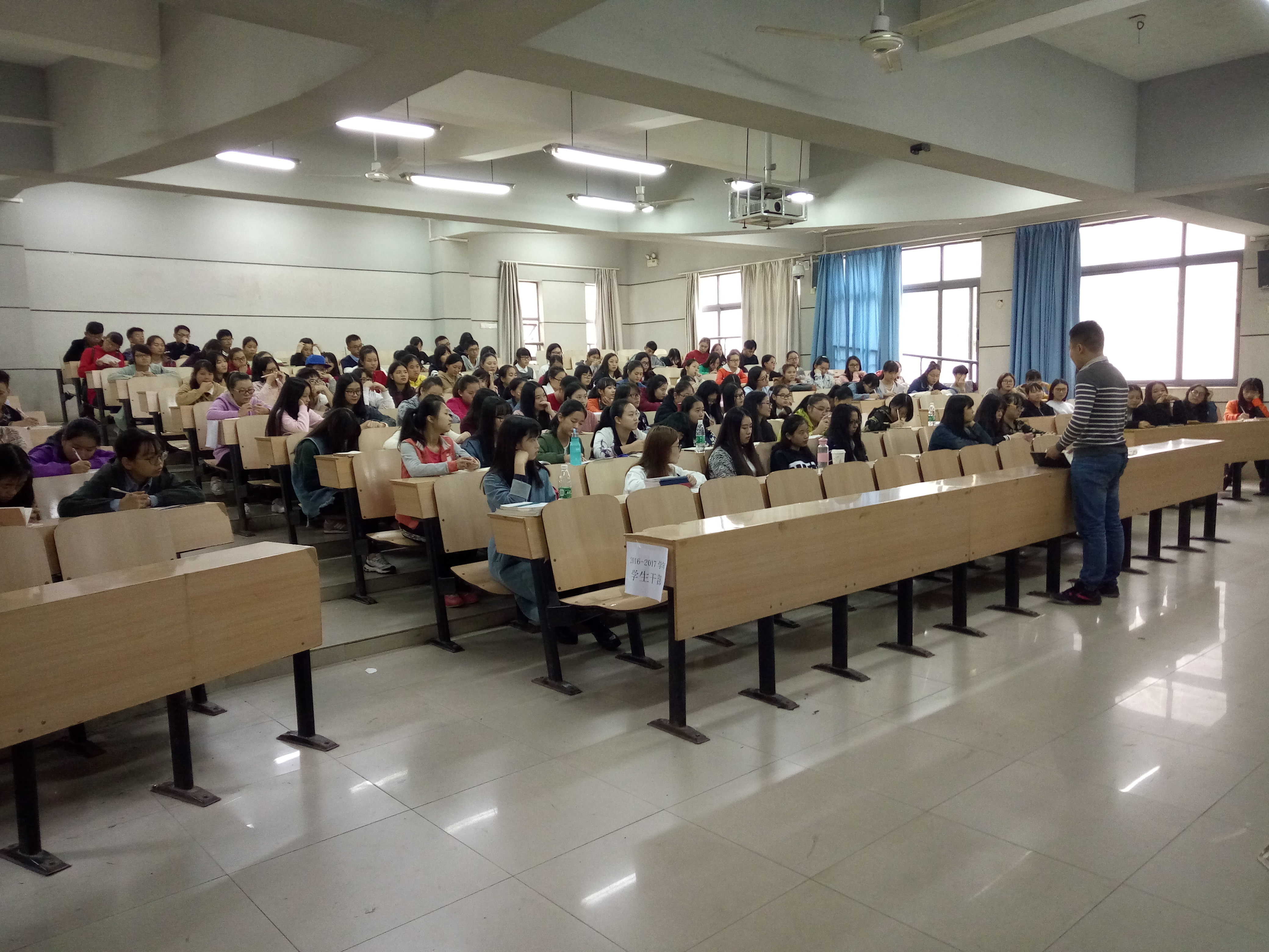 (通讯员 龙紫荆) 为了让全体学生干部助理尽快融入学生干部这个大家庭,2016年10月14日中午12点整,信息科学与工程学院在理科楼b栋101教室召开第一次全体学生干部助理见面会。院党总支罗祥云副书记、学工办李豪杰老师和2016-2017届全体学生干部及干部助理共计140余人参与了本次大会。会议由学生会副主席杨妍主持。