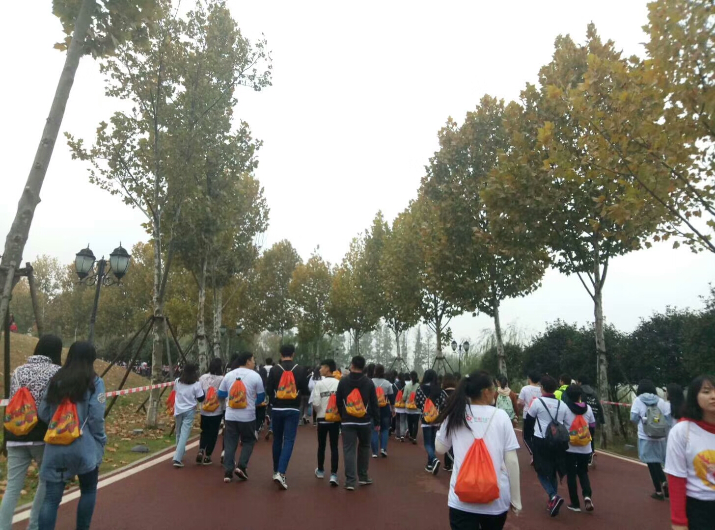 (通讯员 许孔为)2017年11月12日,信息科学与工程学院青年志愿者协会组织80名院内学生参加“长沙慈善20年——为爱行走•善美长沙”公益徒步活动。活动当天早上7时,学院的参赛者们携带背包等物资在学校拱门集合,由青志协人员带队赶往活动起点——洋湖湿地公园。