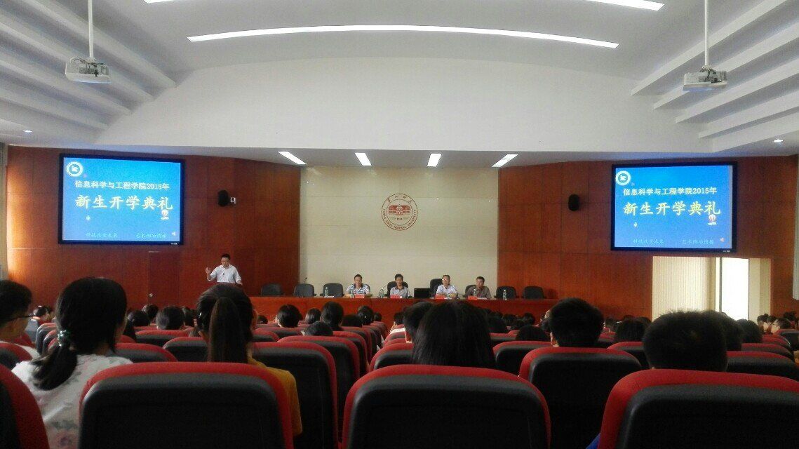 (通讯员 肖亚丽 易利)9月13日上午9点,信息科学与工程学院2015级新生开学典礼在科技楼B栋视频会议室隆重举行。校长助理、信息科学与工程学院院长李勇帆、院党总支书记王杰文、院长助理王建军、田祖伟、以及全体教师、家长代表、学生干部代表、15级高招全体新生共计260余人出席了典礼。典礼由王杰文书记主持。