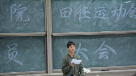随后,运动员代表16电子1班申旺同学上台发言。他对学院开展此次动员大会以及长期关注田径队训练的举措表示感谢,也表示会和其他运动员们一同携手,发扬拼搏进取精神,认真遵守比赛规则,尽己所能地为学院争取荣誉。