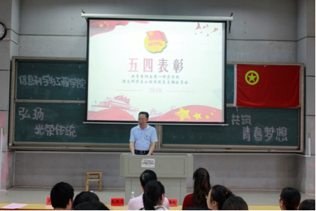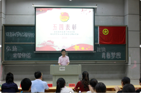 信息科学与工程学院2017-2018学年总支部委员会工作总结暨五四表彰大会在玉衡楼报告厅(二)举行。校长助理、信息科学与工程学院院长李勇帆、学院党总支书记王杰文、党总支副书记易利、团总支书记唐瑞鸿出席会议,2017-2018届全体学生干部及助理,各班级学生代表共计200余人参加此次会议。