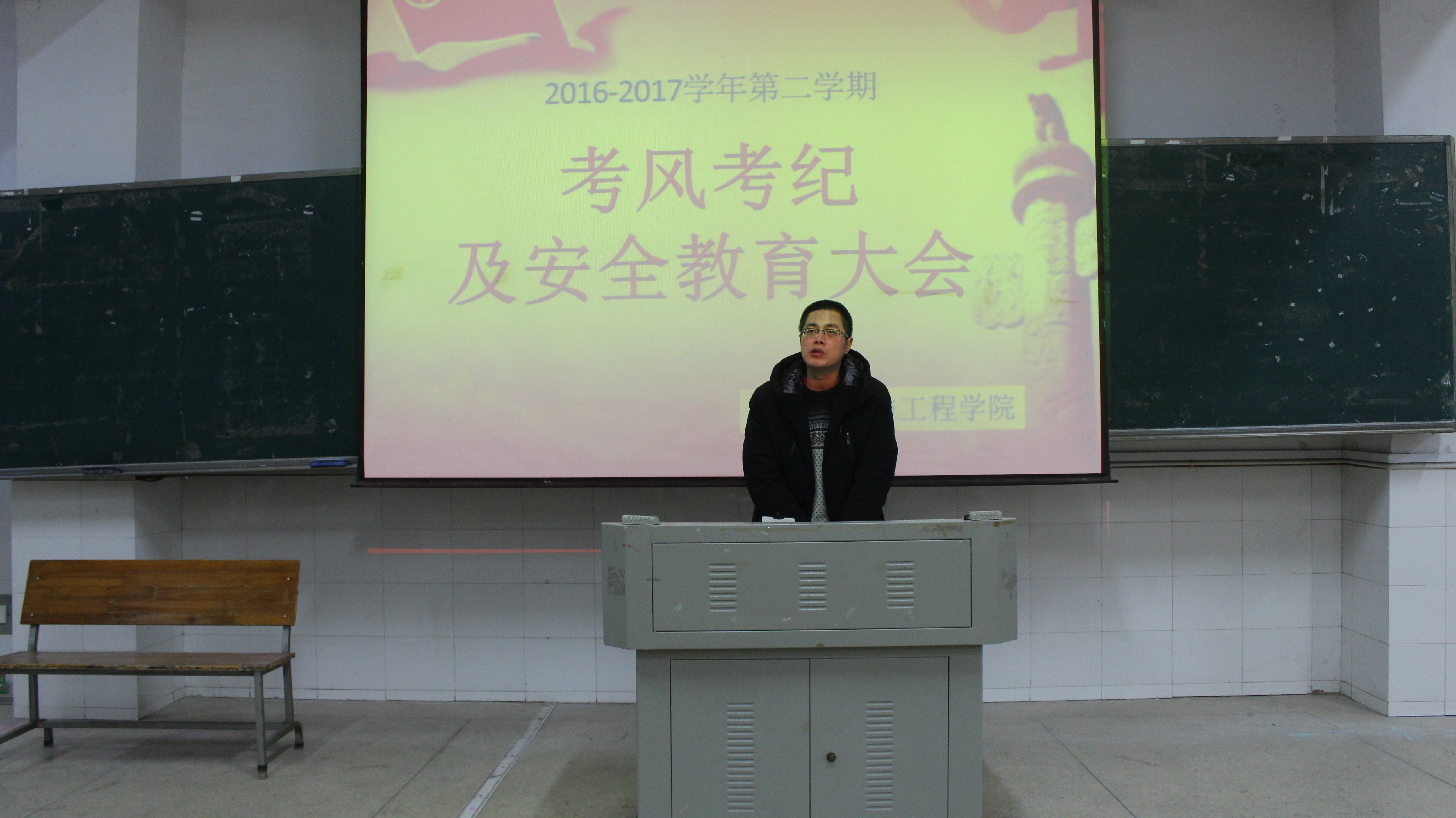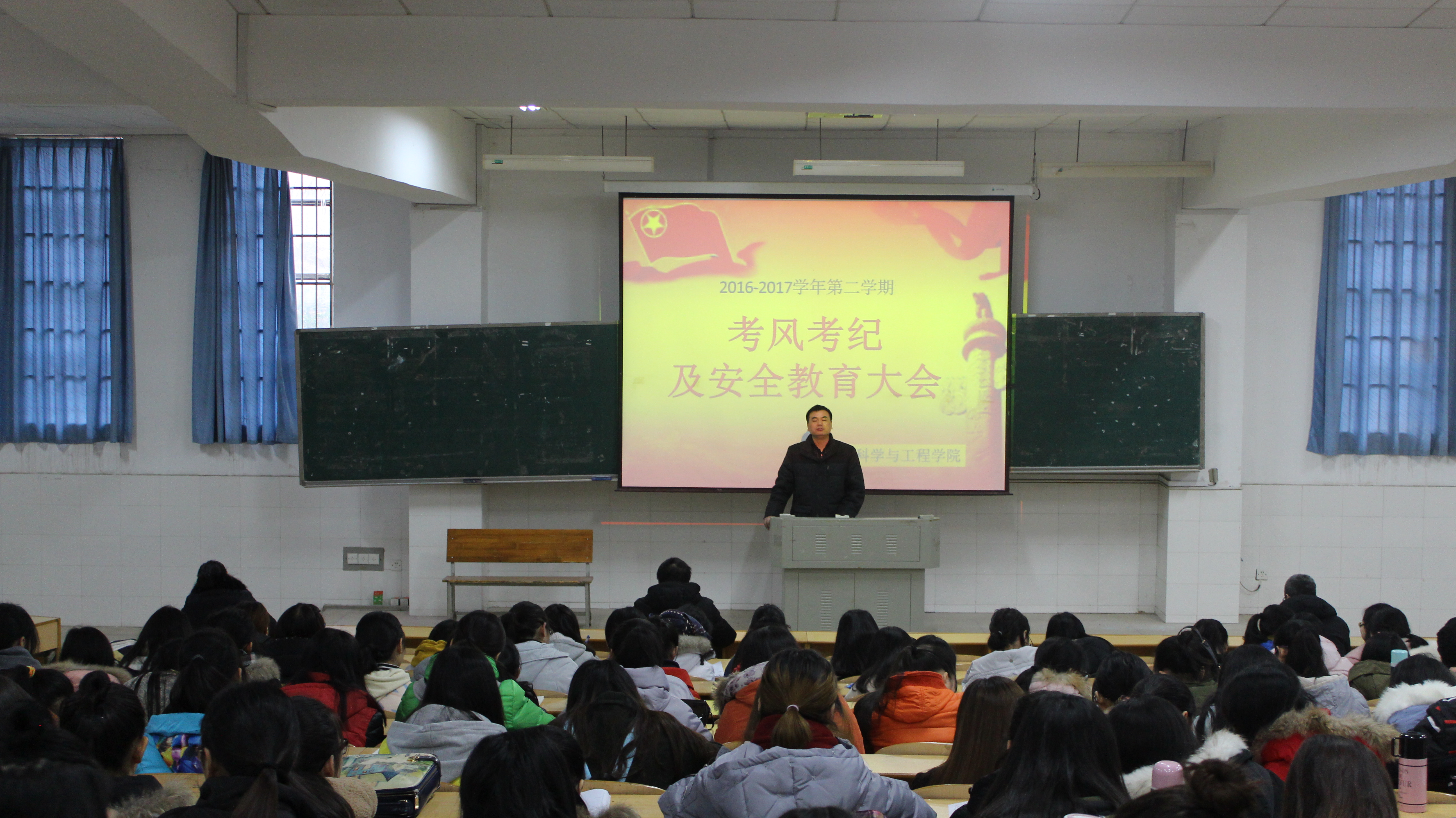 在全体人员庄严宣读了《考生考试诚信承诺书》后,罗祥云副书记再次强调了诚信考试的严肃性和违纪后果的严重性,希望全体学生诚信应考,不要因小失大!最后,罗副书记从心理健康安全、宿舍用电用水和防盗安全、交通安全、离校的报备及假期安全、资金管理和信息保护、维护大学生的形象、突发事件正当维权渠道七个方面对寒假假期校内外安全以及注意事项进行了详细的讲解。