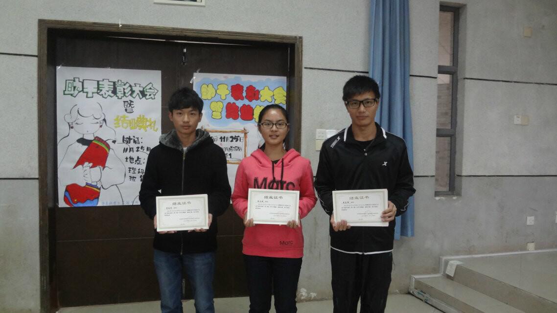 优秀学员代表14通信1班刘静茹上台发言,她表示本次培训理念先进、内容丰富,无论是在做人方面还是办事方面,都让她受益匪浅。她将不断学习,珍惜每次锻炼自己的机会。接着,团总支副书记曾玉娇宣读了2014-2015学生干部助理任用名单。