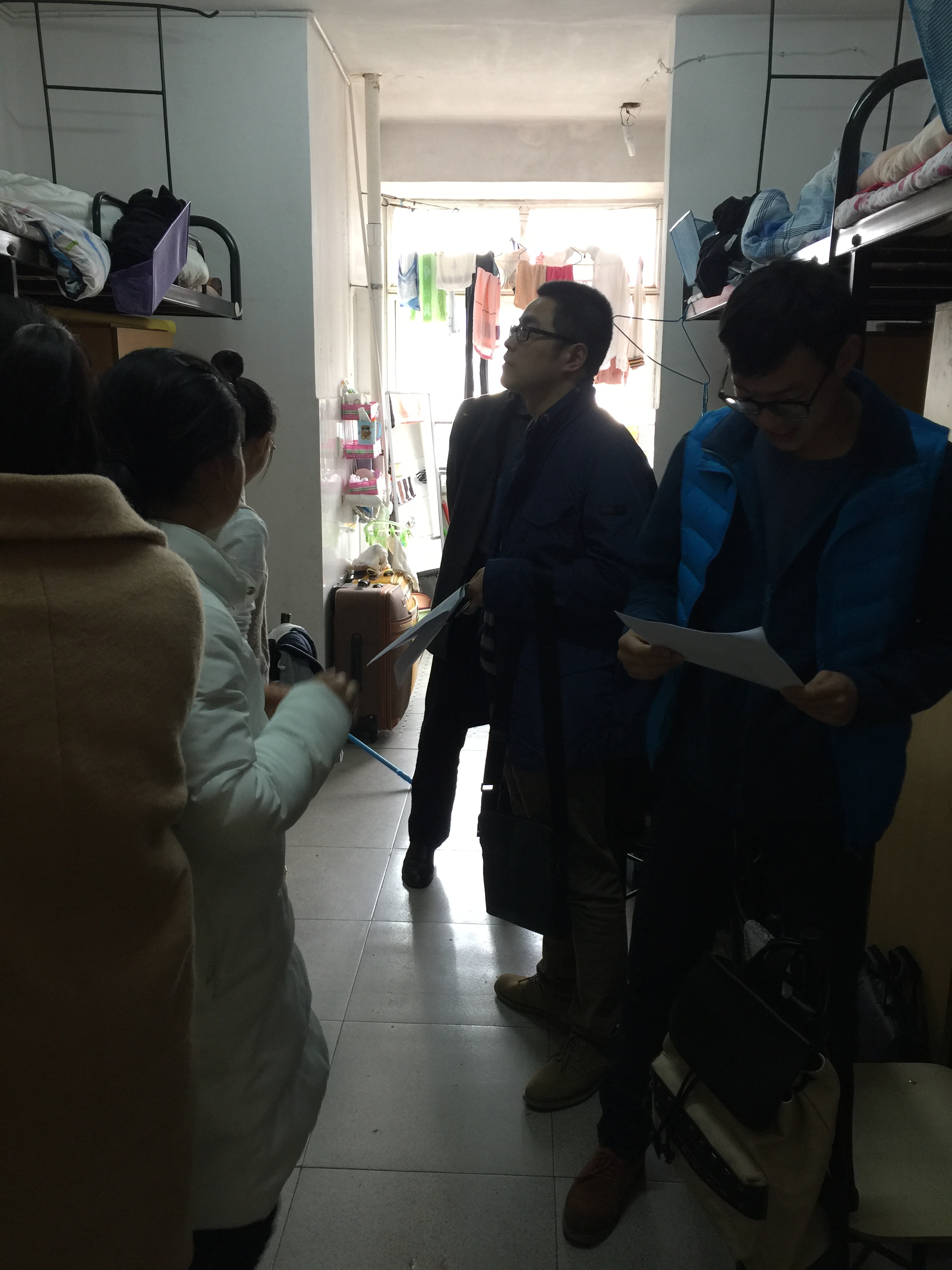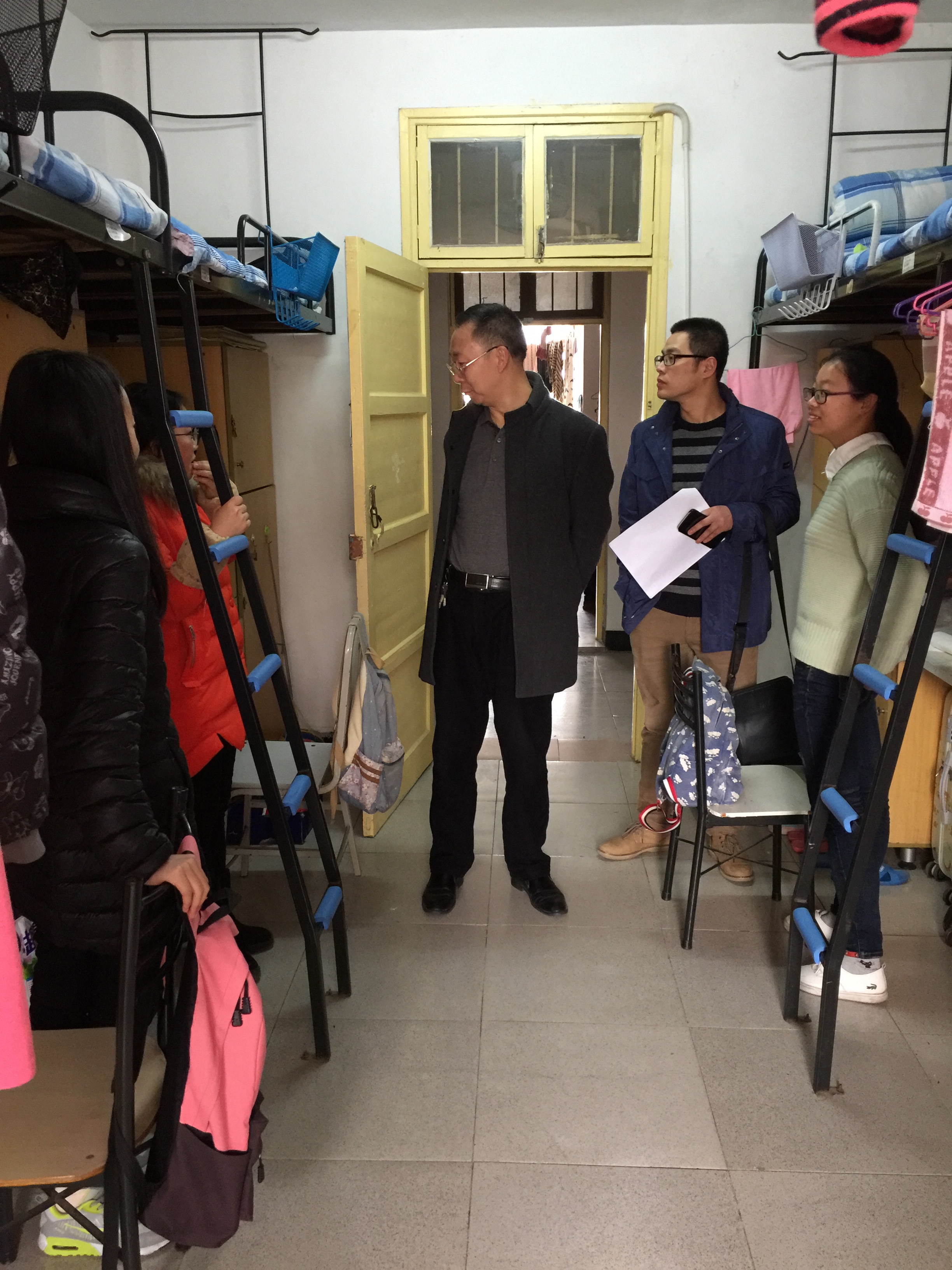 王书记一行每到宿舍都首先祝贺同学们新年好,并于同学们亲切交流寒假生活的点滴以及春节民俗,王书记询问了大家上学期考试情况和春节期间学习生活状况,叮嘱期末考试有不及格科目的同学认真总结,及时复习补考,提防积重难返。罗书记要求同学们调整生物钟,尽快把心思转到学习上,并一再叮嘱同学们要遵守寝室行为规范,不违规使用大功率电器,注意宿舍卫生和宿舍文化建设,建设一个温馨干净和浓厚学习氛围的宿舍。领导老师和同学就宿舍热水供应、卫生条件、是否存在漏水隐患、宿舍维修、宿舍安全等进行了探讨交流,询问大家对学校学生管理、生活服务等方面的意见和建议。