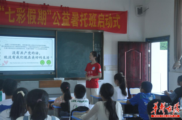 (实践团队员讲授共产党的先锋领导作用,让小朋友们对歌曲有更深的理解)