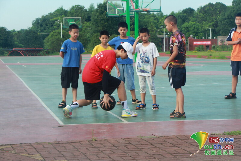 图为志愿者在带着同学们上篮球体育课。中国青年网通讯员 欧阳健 供图