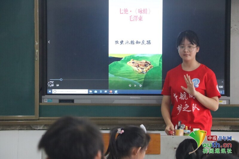 图为教师在讲台上为孩子们讲解诗词。中国青年网通讯员 段新利 摄