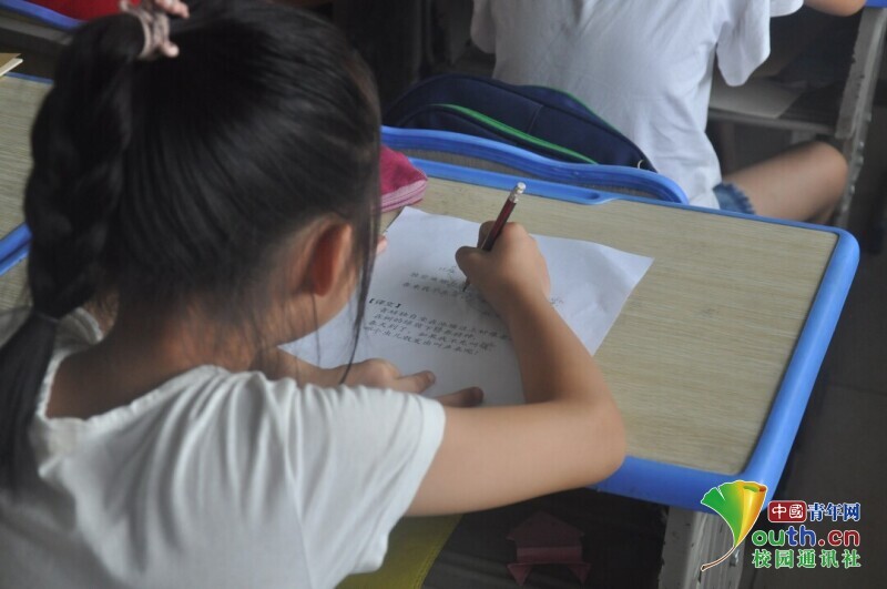图为课堂时间孩子记笔记。中国青年网通讯员 段新利 摄