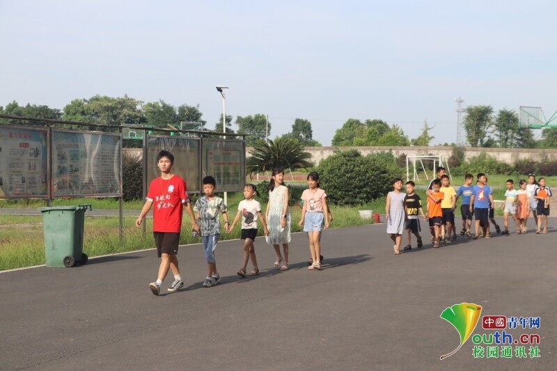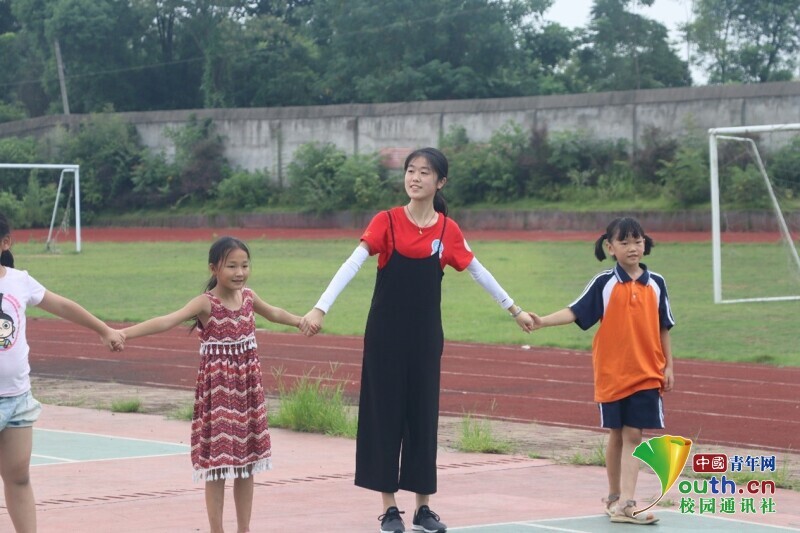图为老师在操场上组织大家开展游戏。中国青年网通讯员 段新利 摄