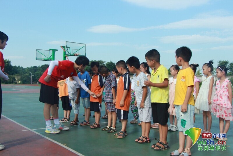 图为孩子们跟老师进行一场“5对1”的篮球赛。 中国青年网通讯员 段新利 摄