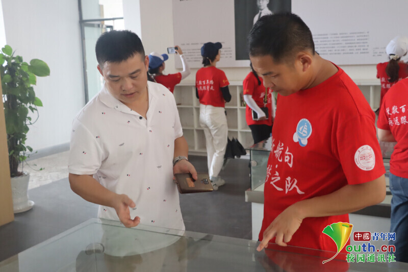 图为张国基纪念馆老师为新航向·梦之队带队老师介绍张国基先生的先进事迹。中国青年网通讯员 段新利 摄