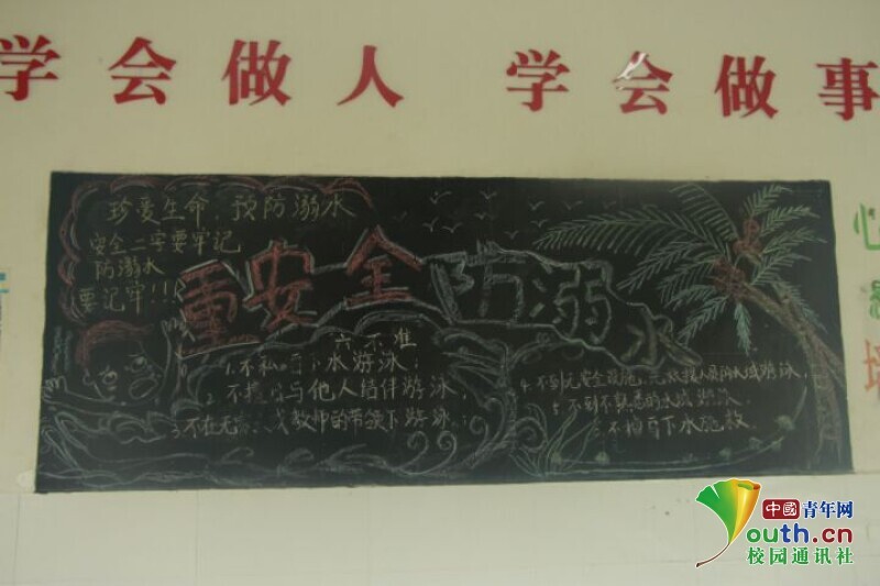 图为向日葵班防溺水粉笔画。中国青年网通讯员 王彬艳 摄