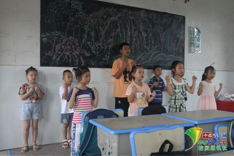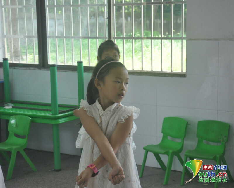 图为学生们正在跟着音乐跳手势舞《生命最重要,安全要记牢》,夏天到,河水涨,防溺水要记牢。中国青年网通讯员 何星逸 摄