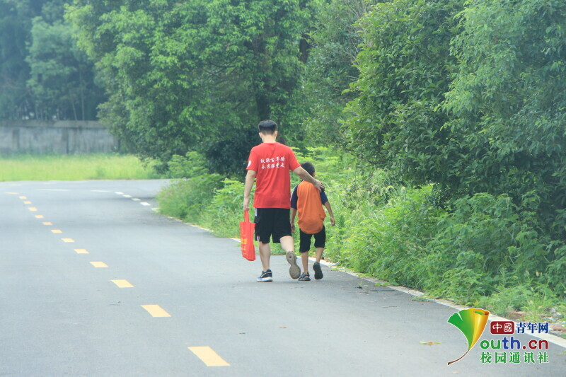 图为志愿者护送未到校的学生前往学校。中国青年网通讯员 何星逸 摄
