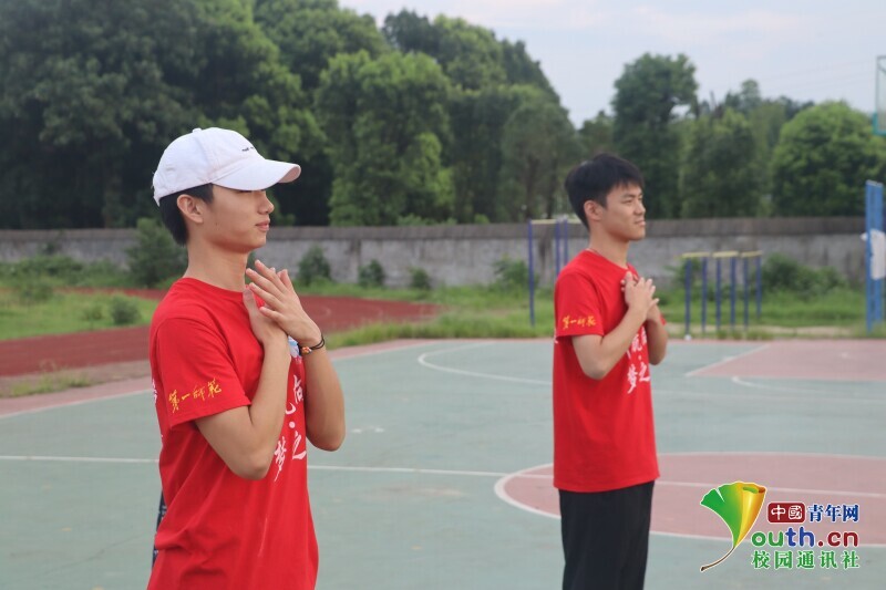 图为清晨起来认真排练《最好的未来》手语舞的志愿者们。中国青年网通讯员 段新利 摄