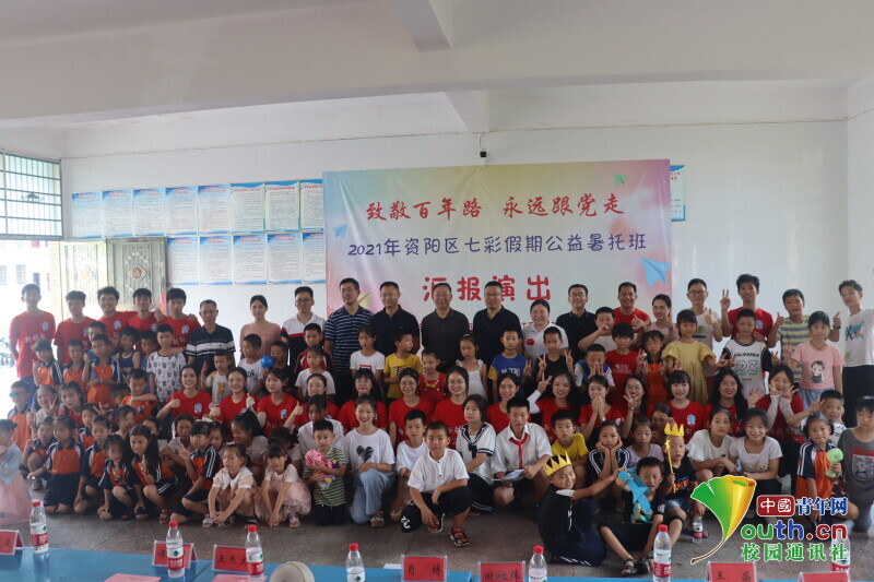 图为文艺汇演后领导和所有的队员和孩子们合影留念。中国青年网通讯员 段新利 供图