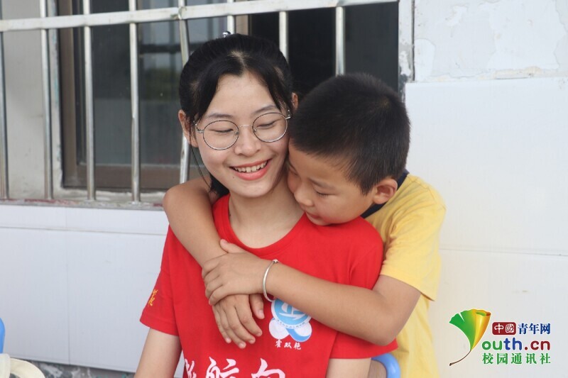 图为志愿者和孩子拥抱在一起,成为了彼此交心的朋友。中国青年网通讯员 欧阳健 供图