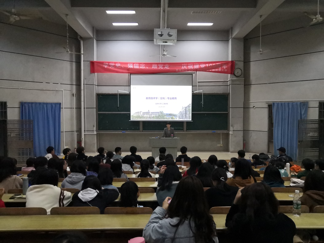 10月31日晚上,午夜av 面向21级881-882教技班在怀中南110开展教育技术学(定向)专业指导活动。活动由小学信息技术教育教研室主任黄悦主讲。