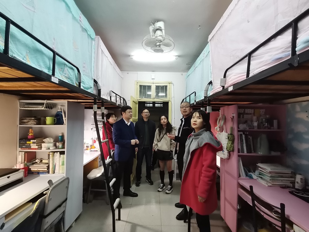 党委书记刘立勇教授、副院长何向阳教授、陈奕副书记、学工办关红儒、叶晶一行到学生公寓调研,看望学生的生活和学习情况。