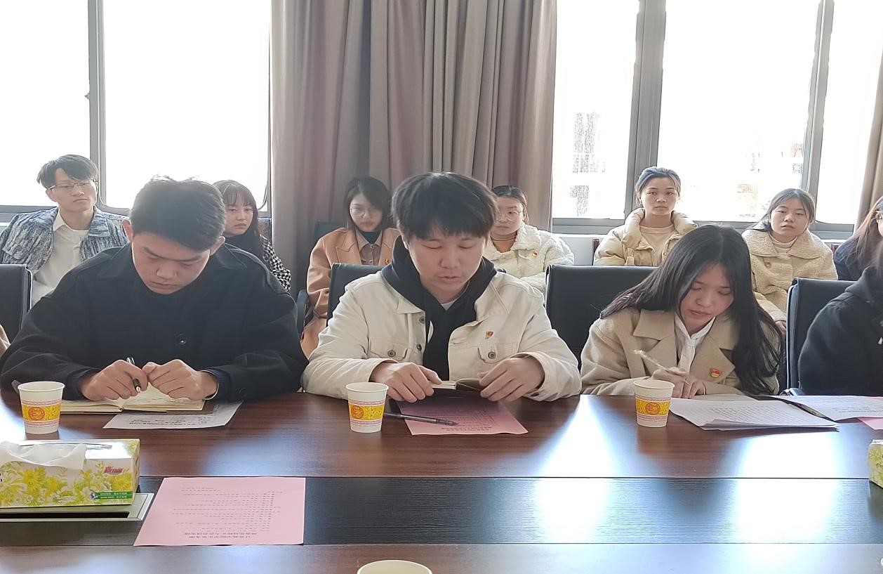 十一月份预备党员转正大会,讨论并表决叶凌峰等16名预备党员按期转正事宜,党委书记刘立勇、党委副书记陈奕、党支部书记关红儒、学工办老师叶晶以及所有学生党员、预备党员参与会议。