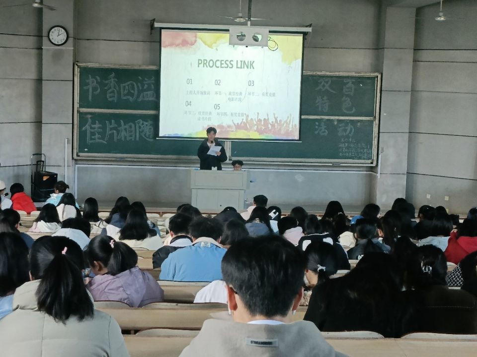 和电子信息学院学生会学风建设部于润寰南105开展了以“书香四溢,佳片相随”为主题的双百特色活动。