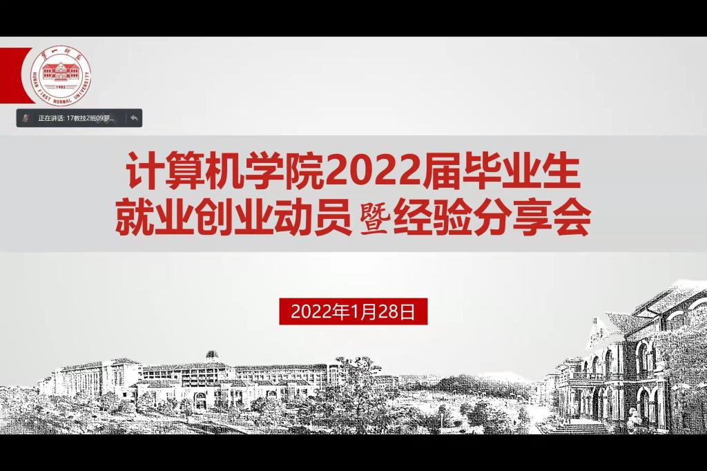 2022届毕业生就业创业动员暨经验分享会以腾讯会议形式举行。招生就业处朱承学处长、殷章馨副处长、学院全体党政领导、全体辅导员、往届优秀校友代表、全体2022届非公费毕业生与会,会议由学院党委副书记陈奕主持。